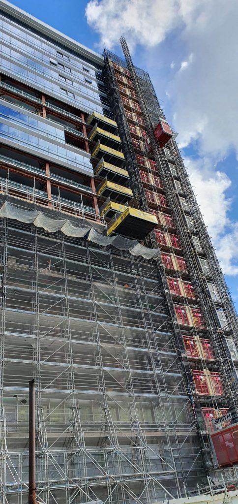 InterGroup was initially engaged by Naylor Love to undertake corrosion protection and intumescent coatings on the in-situ steelwork, initially beginning work on the perimeter of one of the towers. The scope of works was increased to include fireproofing and corrosion protection of the entire tower and adjacent basement area.