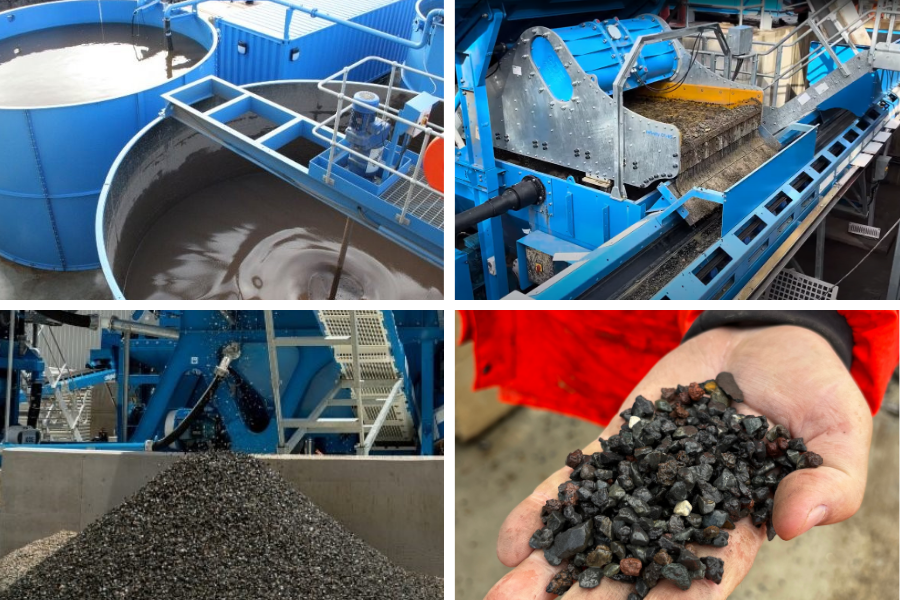 - Separation, cleaning, grading and reuse of aggregate and sand